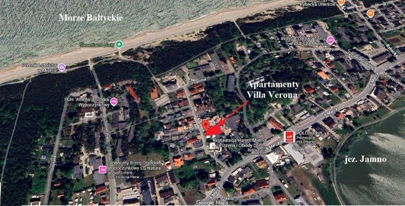 Villa Verona usytuowana jest pomiędzy morzem Bałtyckim i jeziorem Jamno.
