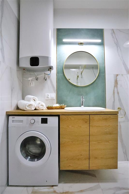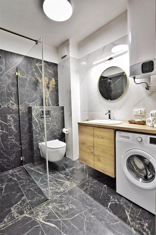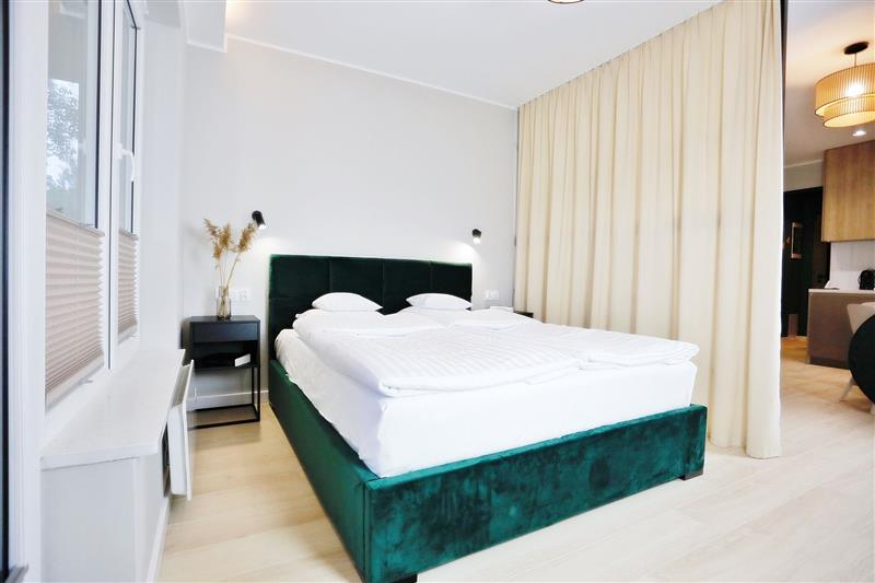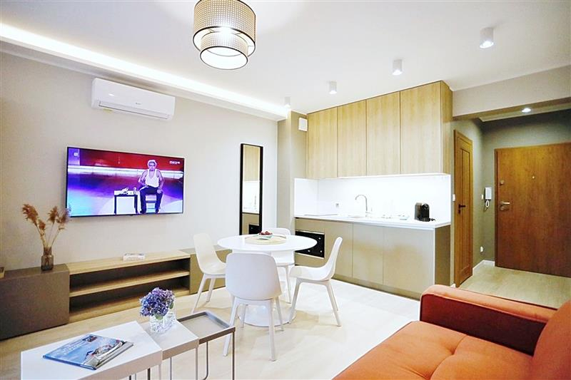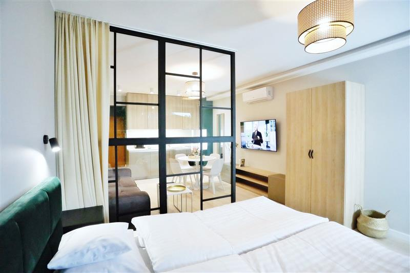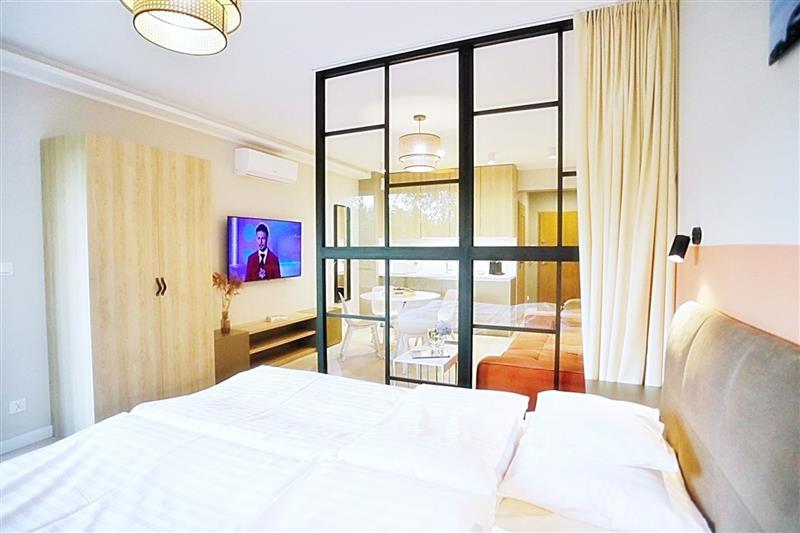 Każdy apartament został starannie wykończony, umeblowany i wyposażony (zabudowa kuchenna oraz szafy indywidualnie zamawiane z wysokiej jakości materiałów, TV 55 cali, klimatyzacja, pralka, lodówka, zmywarka, mikrofala, płyta indukcyjna, okap, na podłodze wysokiej klasy ścieralności panele, drzwi wejściowe do apartamentów antywłamaniowe. Łazienki wykończone w bardzo wysokim standardzie, prysznice z odpływami liniowymi Viega, armatura Grohe, umywalki Villeroy & Boch, kafle Tubądzin i hiszpańskie Ape).