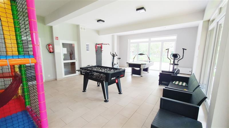 Do dyspozycji właściciela lokalu jest sala fitness z placem zabaw dla dzieci (małpi gaj), piłkarzyki, air hockey, miejsce zabaw dla dzieci na zewnątrz budynku na terenie zielonym.