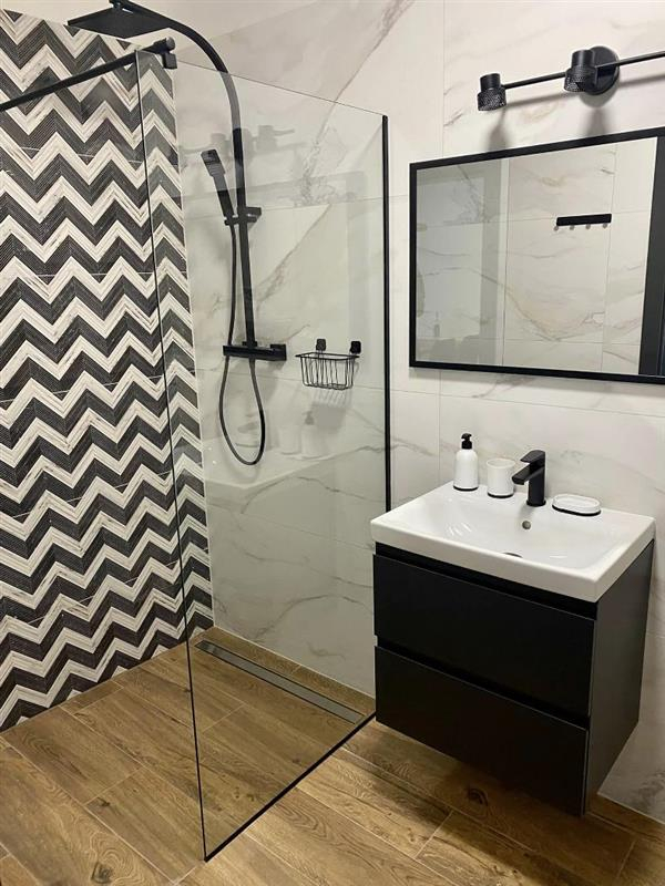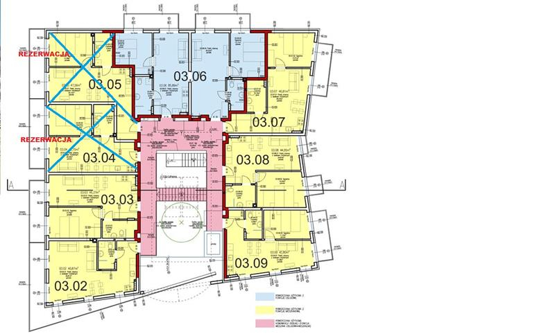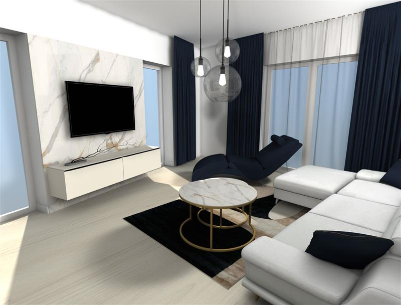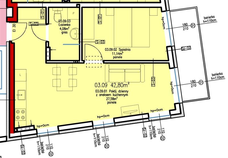 Apartament ( lokal mieszkalny) o pow. 42.80 m2 składający się z salonu połączonego z aneksem kuchennym (27.58m2), sypialni (11,14m2) łazienki (4,08m2), przynależnego balkonu, położony jest na 3 piętrze.