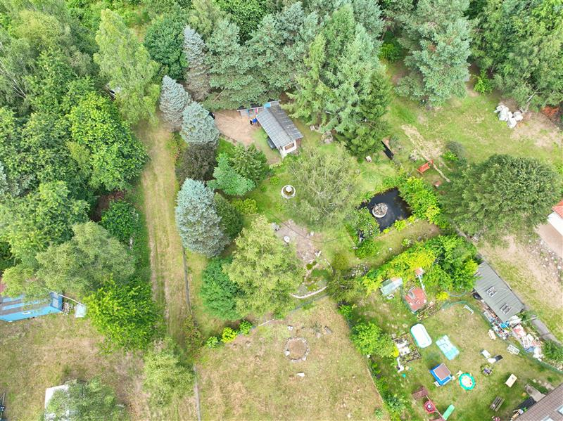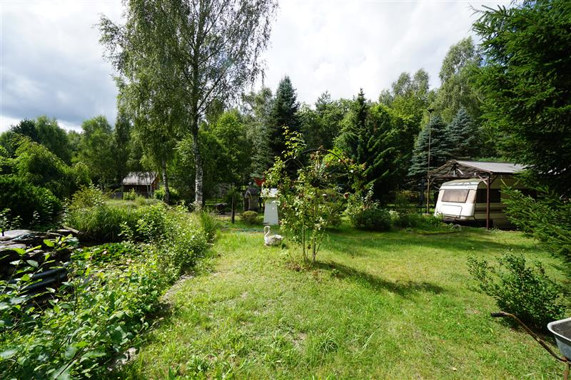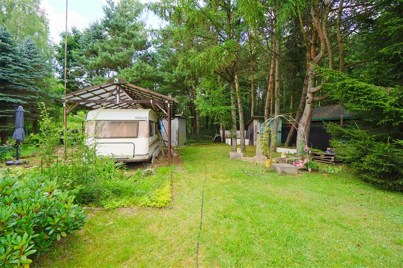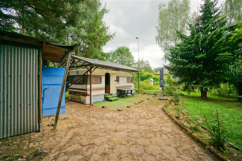 Działka użytkowana obecnie jako nieruchomość rekreacyjna, na posesji znajdują się budynki nie związane z gruntem typu: przyczepa kempingowa, wiata.