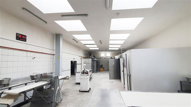 Wysokość pomieszczeń produkcyjnych 4.80 m, z naturalnym doświetleniem poprzez świetliki dachowe.