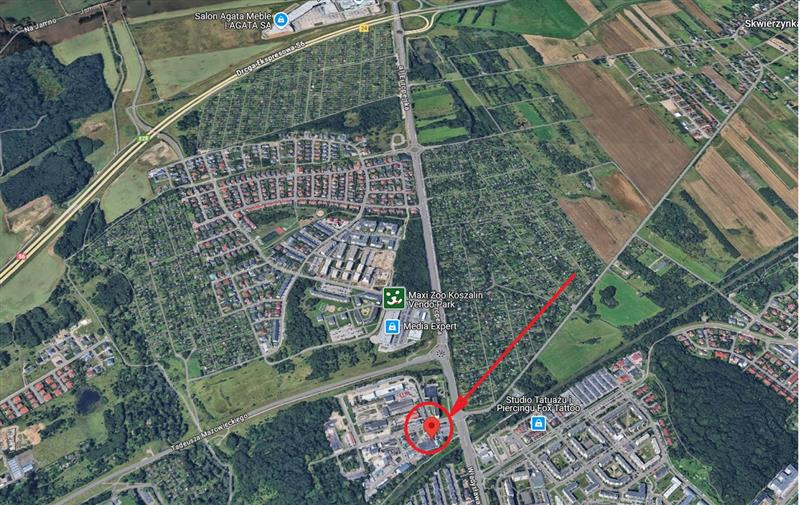 Bardzo dobry dojazd do obiektu ( od trasy S6 1 km). Przed obiektem parking.