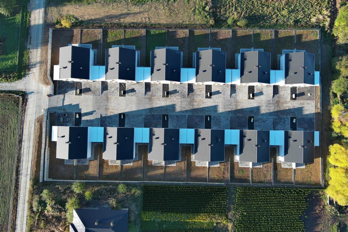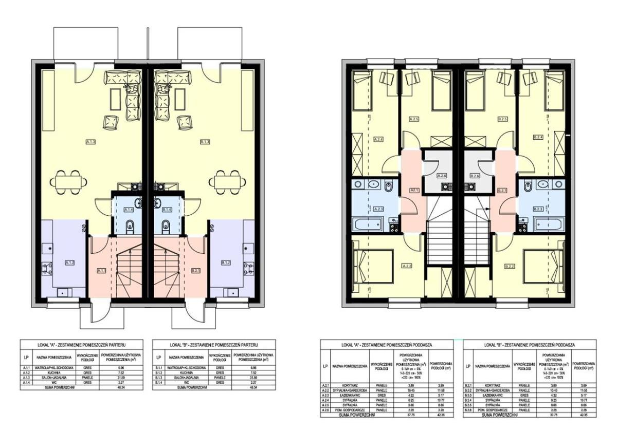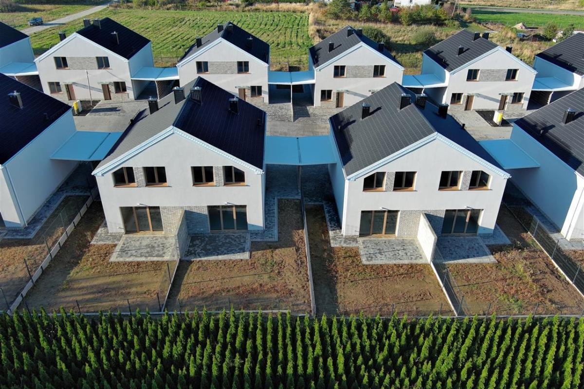 Osiedle obejmuje 12 budynków dwulokalowych w zabudowie bliźniaczej, w standardzie deweloperskim. Każdy lokal posiada: