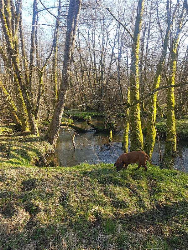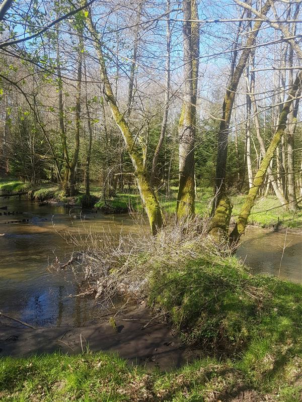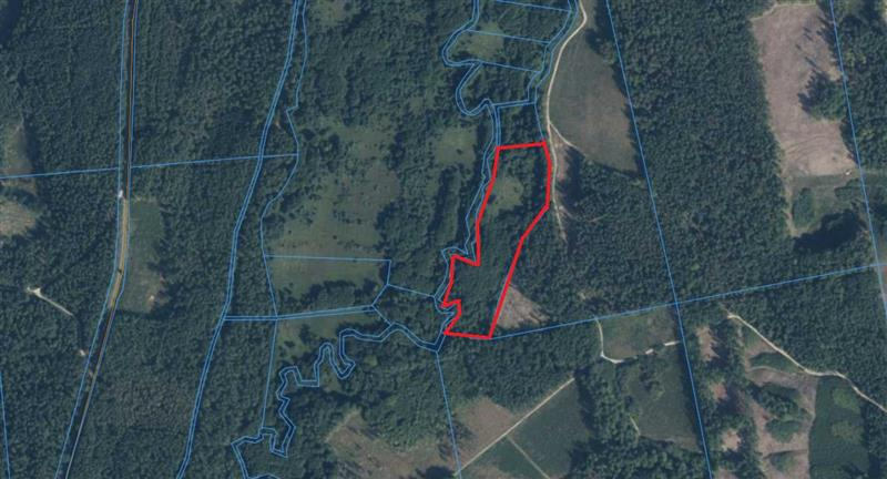 Przepięknie położona działka, wśród lasów i polan z linią brzegową rzeki Grabowa.