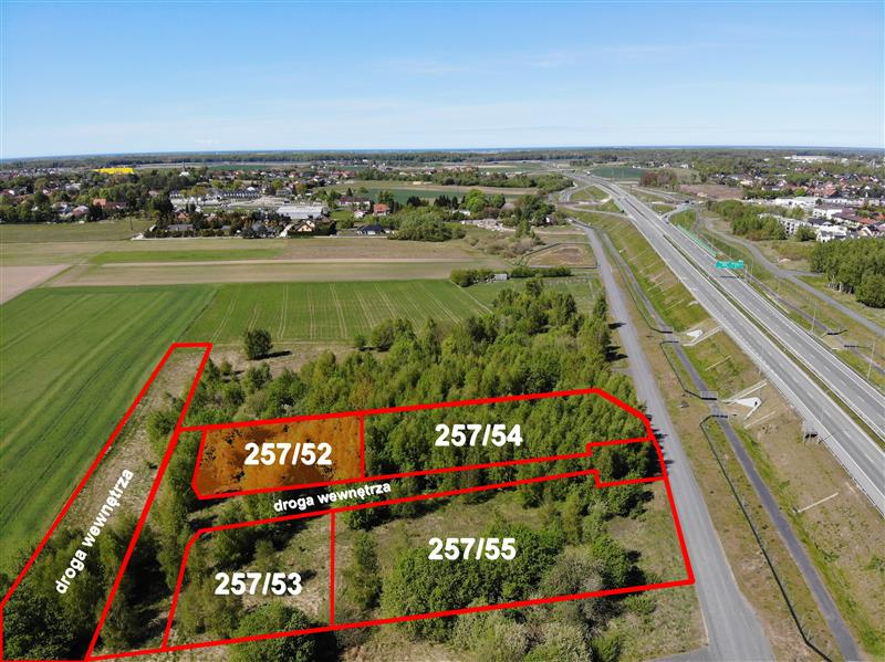 Działka znajduje się w drugiej linii zabudowy od drogi ekspresowej S-11, zapewniając doskonałe połączenie komunikacyjne, a jednocześnie będąc ciekawą opcją inwestycyjną ze względu na perspektywiczny rozwój infrastruktury wokół tego terenu.