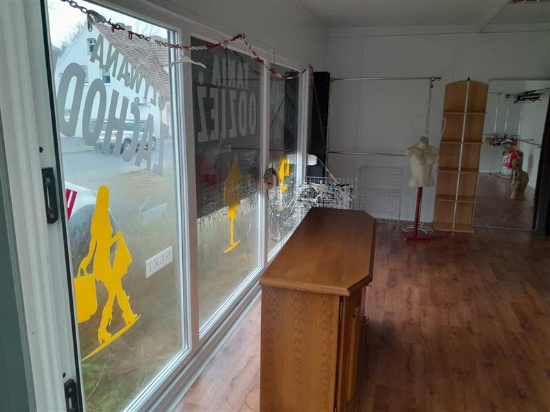 trzy duże witryny od strony ulicy,