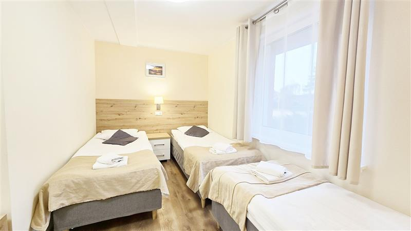 W pokoju trzy łóżka , szafa, komoda - co pozwala na wynajem rodzinie. Wszystko zostaje w cenie lokalu.