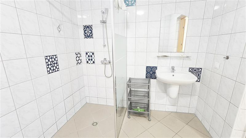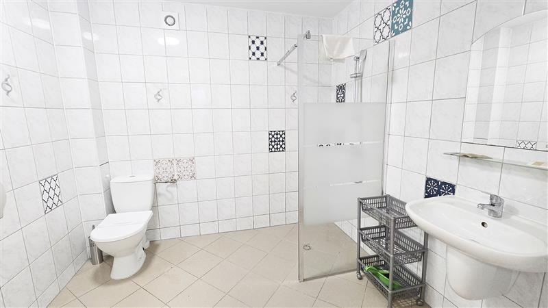 Łazienka: kabina prysznicowa, umywalka, wc. Łazienka przystosowana dla osób niepełnosprawnych.