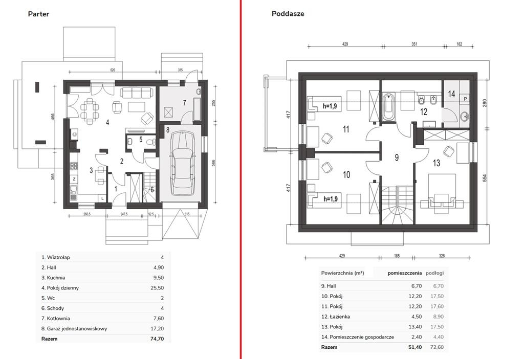 Dom o powierzchni użytkowej 126,75m2, a całkowitej 147,30m2 o bardzo przestronnych wnętrzach.